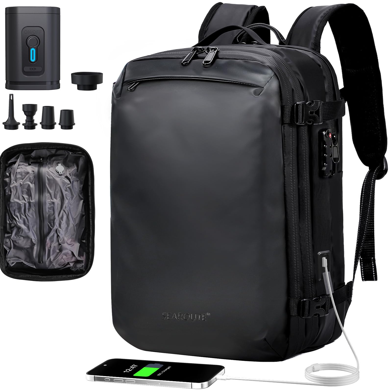 H.yeed Travel Backpack, Expandable 30L-60L Vacuum Backpack with USB&Type-C Charging Port and Pump, Waterproof Lightweight Business Rucksack, Wet Dry Separation, Fits 17.3 Inch Laptop